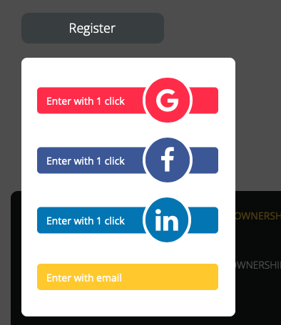 3. Register with Google, facebook, LinkedIn or e-mail - email will require you to create a password. If you choose social media, it will be faster.