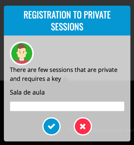 4. If the session is private, you'll be asked to enter the secret key. Paste or type the secret key that you received and click on the blue button to proceed.