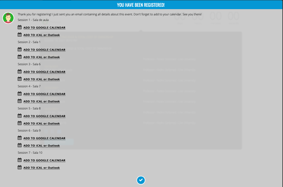This is the same landing page that your attendee will see. However, the button will be ike this: